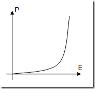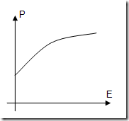 Now when a lorry came in to be offloaded, there was nowhere to hide. Whether I was feeling full of enthusiasm for doing my job or bored witless, I still had to get to work. The net result was that whether my "enthusiasm" (E on the graph below) was low or very high, my "productivity" (P on the graph below) didn't vary that much.