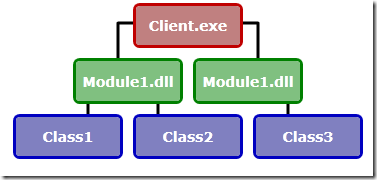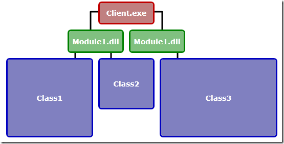 In the world of .NET you might decide that for a particular problem you need two applications – a client and a server. Then you decide that the client needs two assemblies, or DLLs. And inside each of those modules you create a couple of classes.