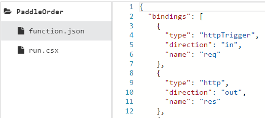 The first thing I needed to do for my webhook, was edit the function.json file to remove the “webHookType” setting from the input httpTrigger. By default this will be set to “genericJson”, but that means we can only accept webhooks with JSON in their body. Paddle’s webhook comes in as x-www-form-urlencoded content, so removing the webHookType setting allows us to receive the HTTP request.
