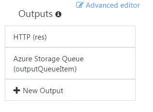 We support send a message to a queue by going to the “Integrate” section in the portal and adding a new output binding of type Azure Storage Queue. This is the easiest to set up as there’s already a storage account associated with your function app you can use called “AzureWebJobsStorage” (although arguably you should create your own to keep your application data separate from the Azure Functions runtime’s data which resides in that storage account).