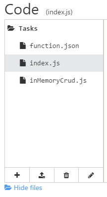 To get this into your function you have a few options. The easiest is in the “Develop” tab to hit “View Files”, and drag and drop my inMemoryCrud.js file straight in. Or you can just create a new file and paste the contents in.