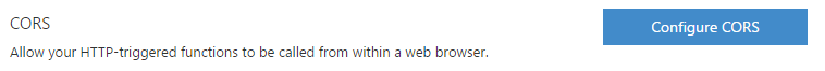 If you’re calling the function from a web-page then you’ll need to enable CORS. Thankfully this is very easy to do, although it is configured at the function app level rather than the function level. In the portal, select function app settings and then choose Configure CORS.