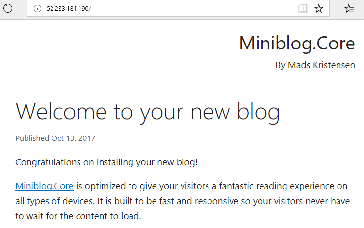 And sure enough we now have Miniblog running in an Azure Container Instance: