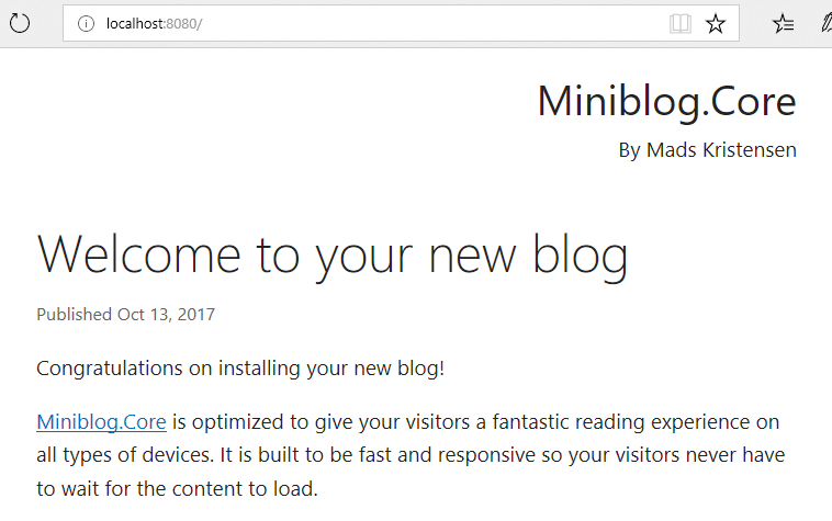 And sure enough, we’ve got Miniblog.Core running in a Linux Docker container locally