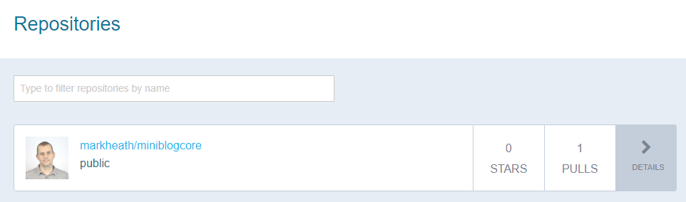 And we can see it online at my DockerHub page: