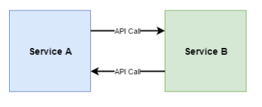 At first glance, webhooks might appear like two systems calling each other’s API. So for example if service A wants to ask service B to perform a long-running operation, service A could call service B’s web API, and then some time in the future, service B calls service A’s web API to tell it that it has finished. However, what we have in this system is two-way coupling of the services. Service A needs to know about Service B’s API and how to call it, and Service B needs to know about Service A’s API and how to call it. Here’s a diagram of a this situation: