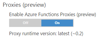 Let’s see how to do that. In our function app, because it’s still in preview, we need to explicitly enable proxies: