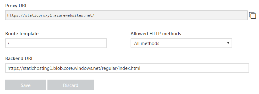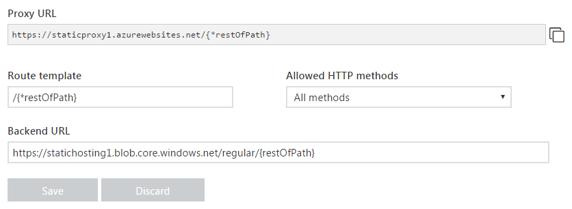 And the second will forward every additional request for any other path directly to the blob container. That’s achieved with the special {*restOfPath}