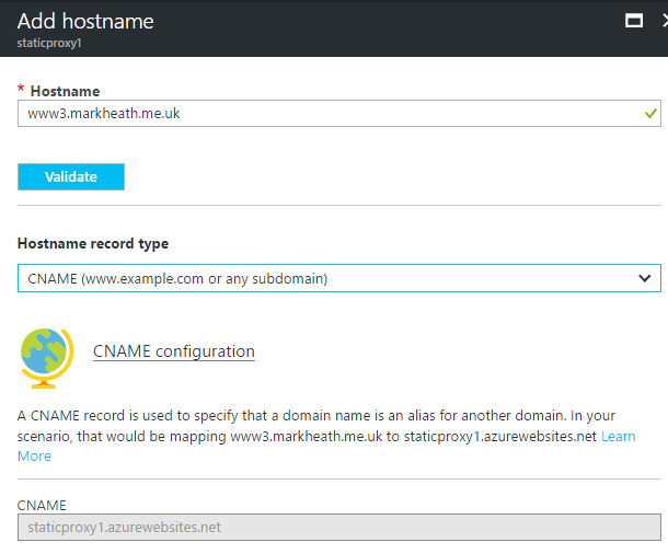 Azure Function Apps also allow you to upload SSL certificates, so as well as solving the default document issue, and removing the need for the container name in the path, this also is a way to use HTTPS on custom domains. So with Azure Functions proxies you can work around most of the major limitations of static hosting on Azure Blob Storage.