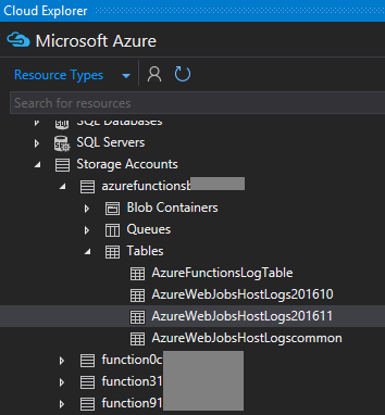 As you can see, there are a few tables in there, and a recent update to Azure Functions means that there is now a table per month, making it easier for you to discard old logs when you’re done with them.